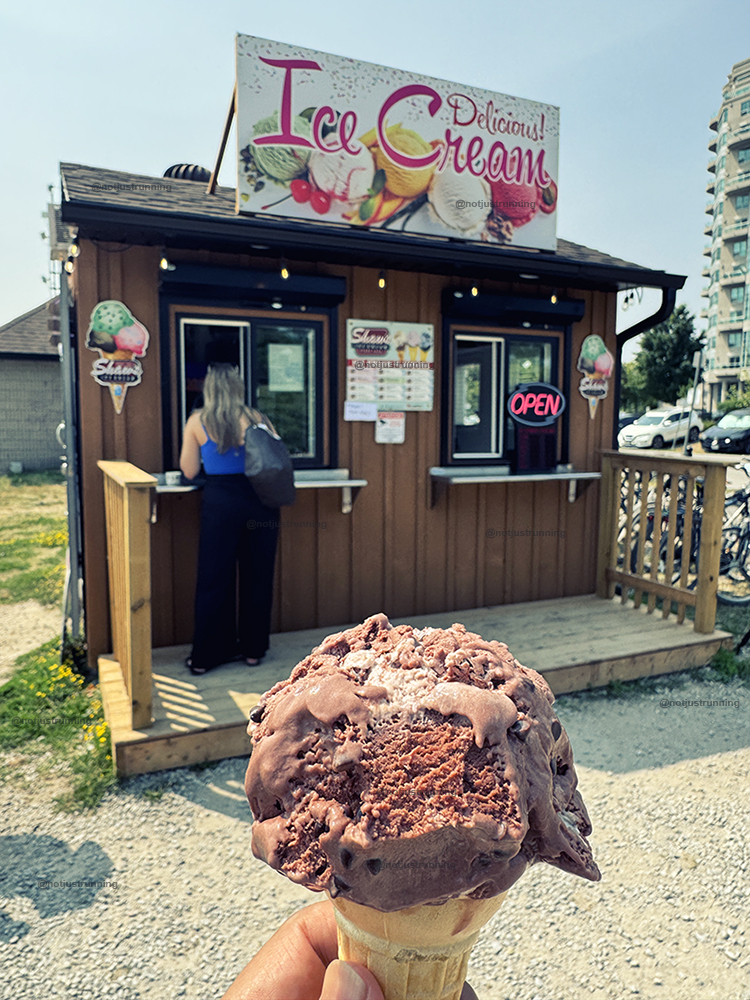 Our first real break came in Barrie, where the waterfront was buzzing with life. Kempenfest was in full swing with art, music and food festival stretching along Heritage Park by Lake Simcoe. The air smelled faintly of lake water and fresh kettle corn, with live music spilling over from the main stage. Strolling along the boardwalk, we found ice cream cones in hand before we even realized it.