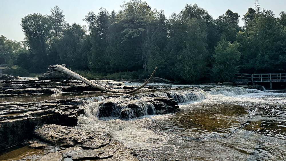 Our first stop was Sauble Falls, just a short drive from Owen Sound. The air was crisp, and the sound of rushing water welcomed us as soon as we stepped out of the car. The falls might not be towering giants, but their wide, cascading steps give them a unique charm — perfect for photos and for kids to explore the rocky edges. We spent about an hour here, snapping pictures and soaking in the calm morning vibe.